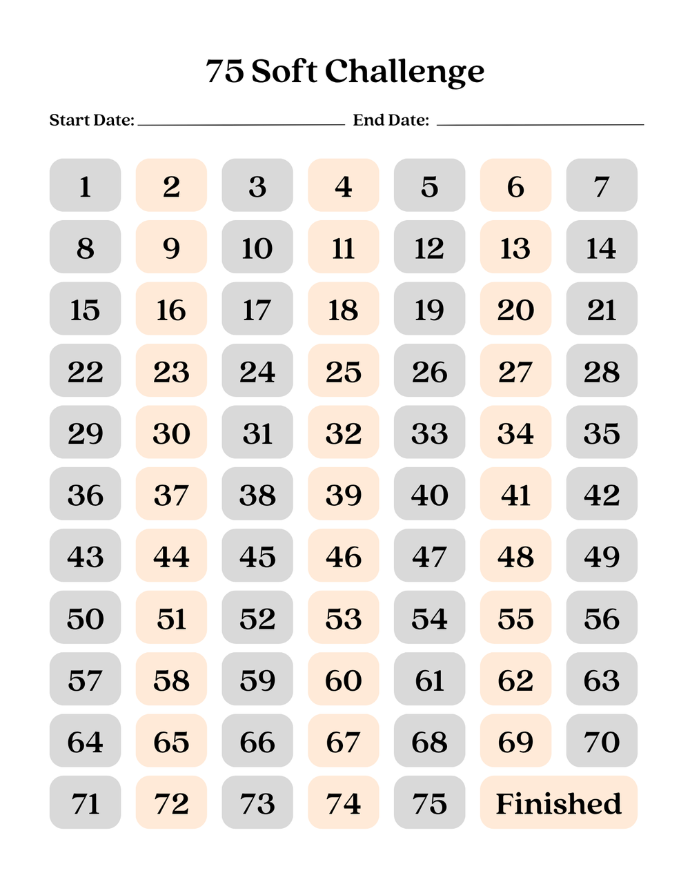 Track your progress and stay motivated with the 75 Soft Challenge Tracker.This 17 page tracker is designed to help you stay on top of your goals,whether it's fitness,personal development, or any challenge you take on.With a sleek black and bold design,this tracker not only keeps you organized but also add a touch of style to your journey.Start tracking today and achieve your goals with confidence.